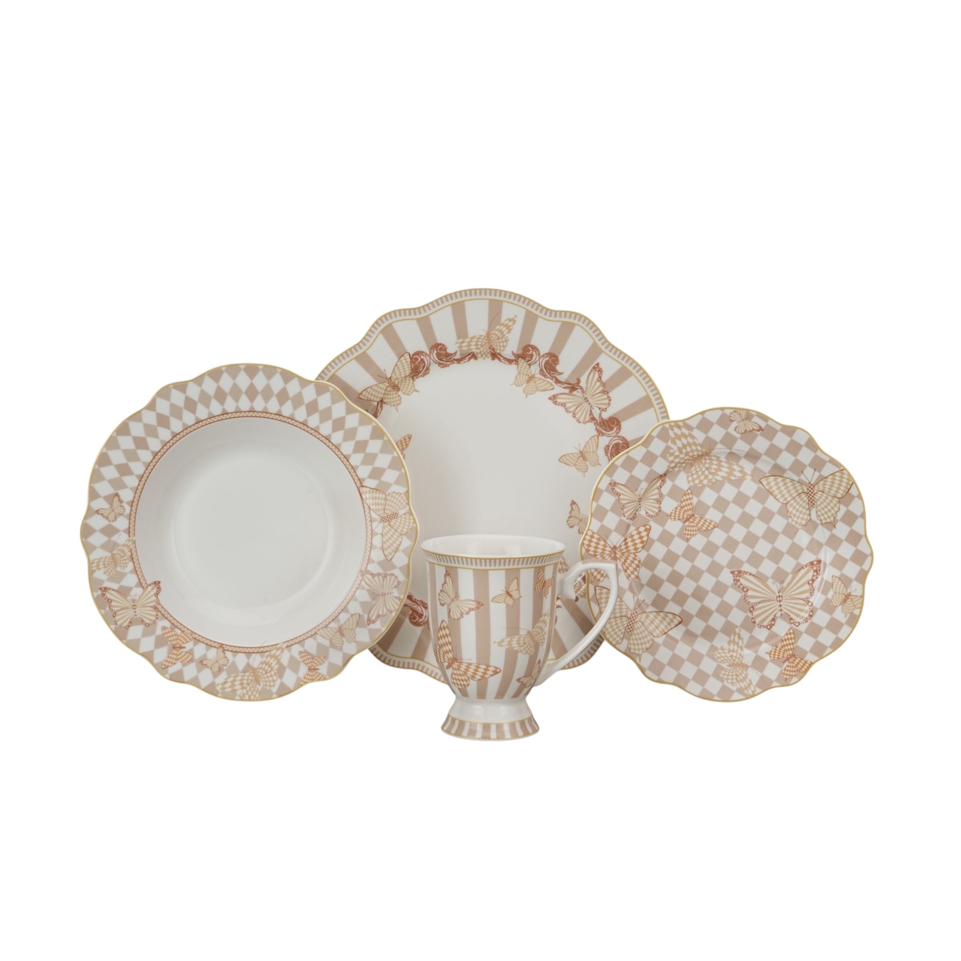 Pink Candy Stripe 24-teiliges Set aus Knochenporzellan, Teil unserer Designer-Homewear-Kollektion