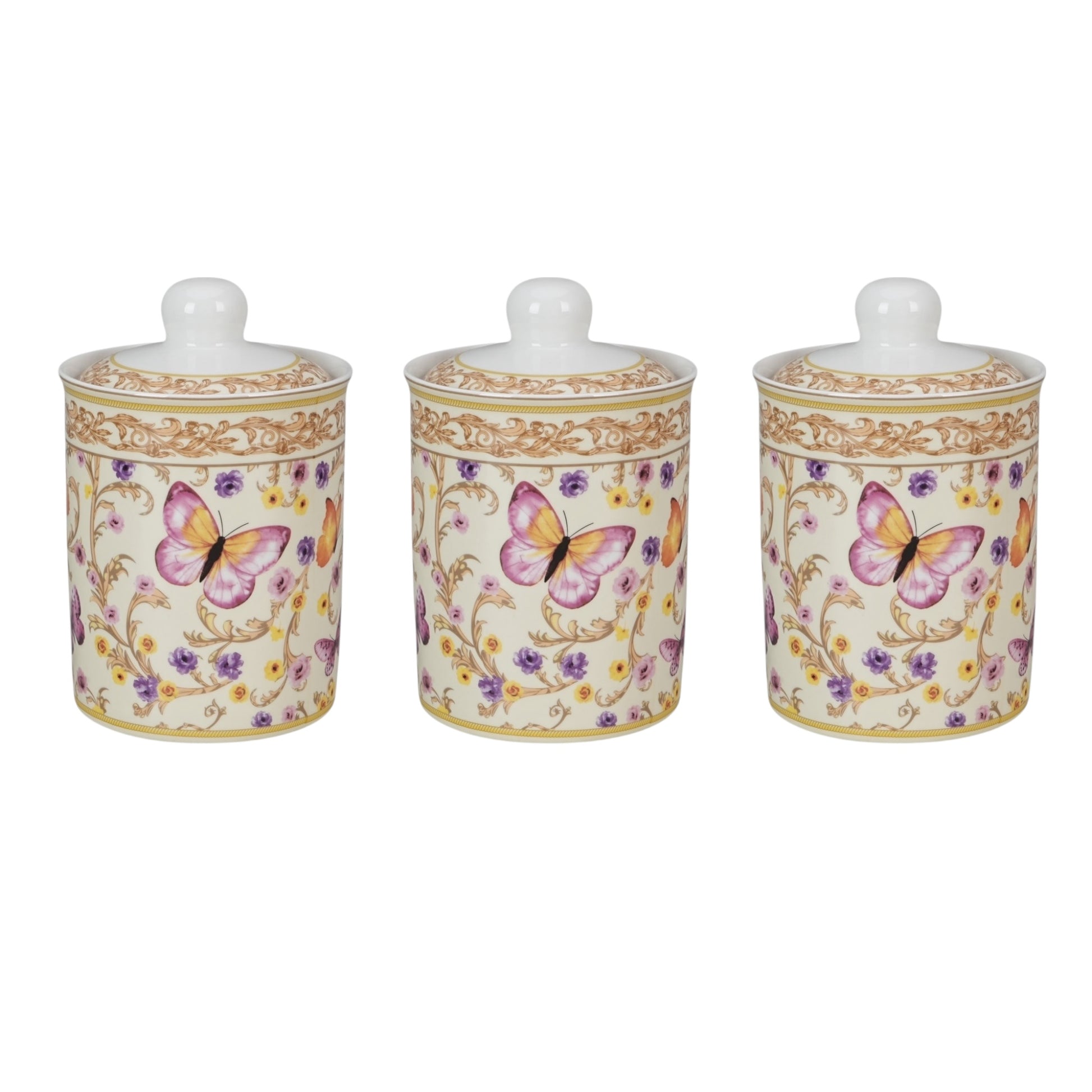 Ivory butterfly airtight storage as set of three ideal for coffee/tea/sugar