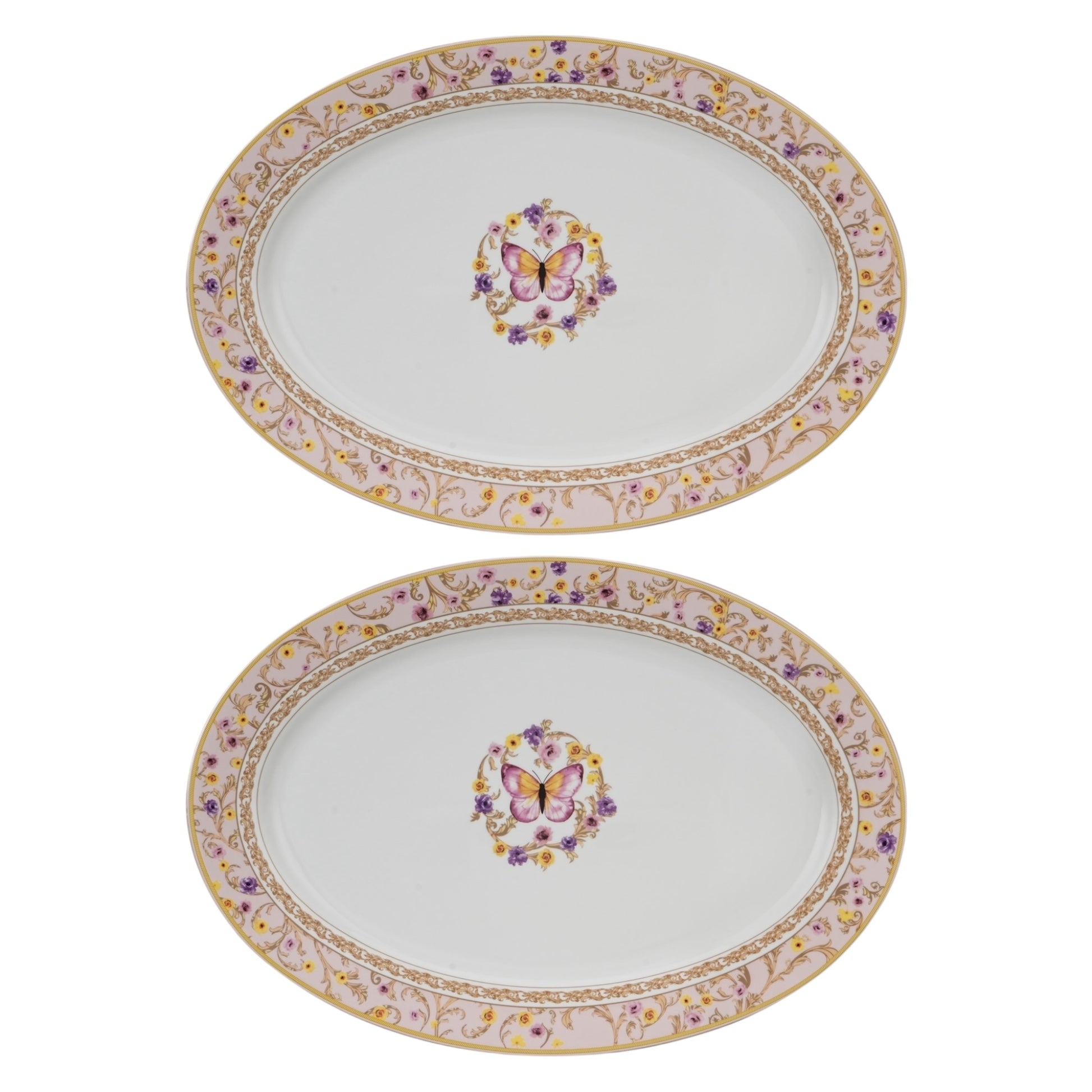 Pink butterfly 16 inch oval serving platter of fine bone China