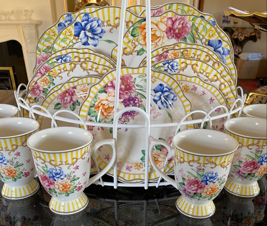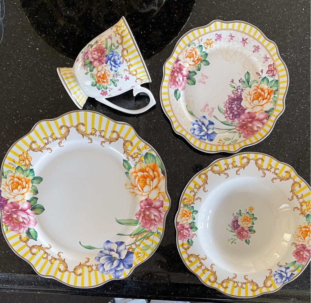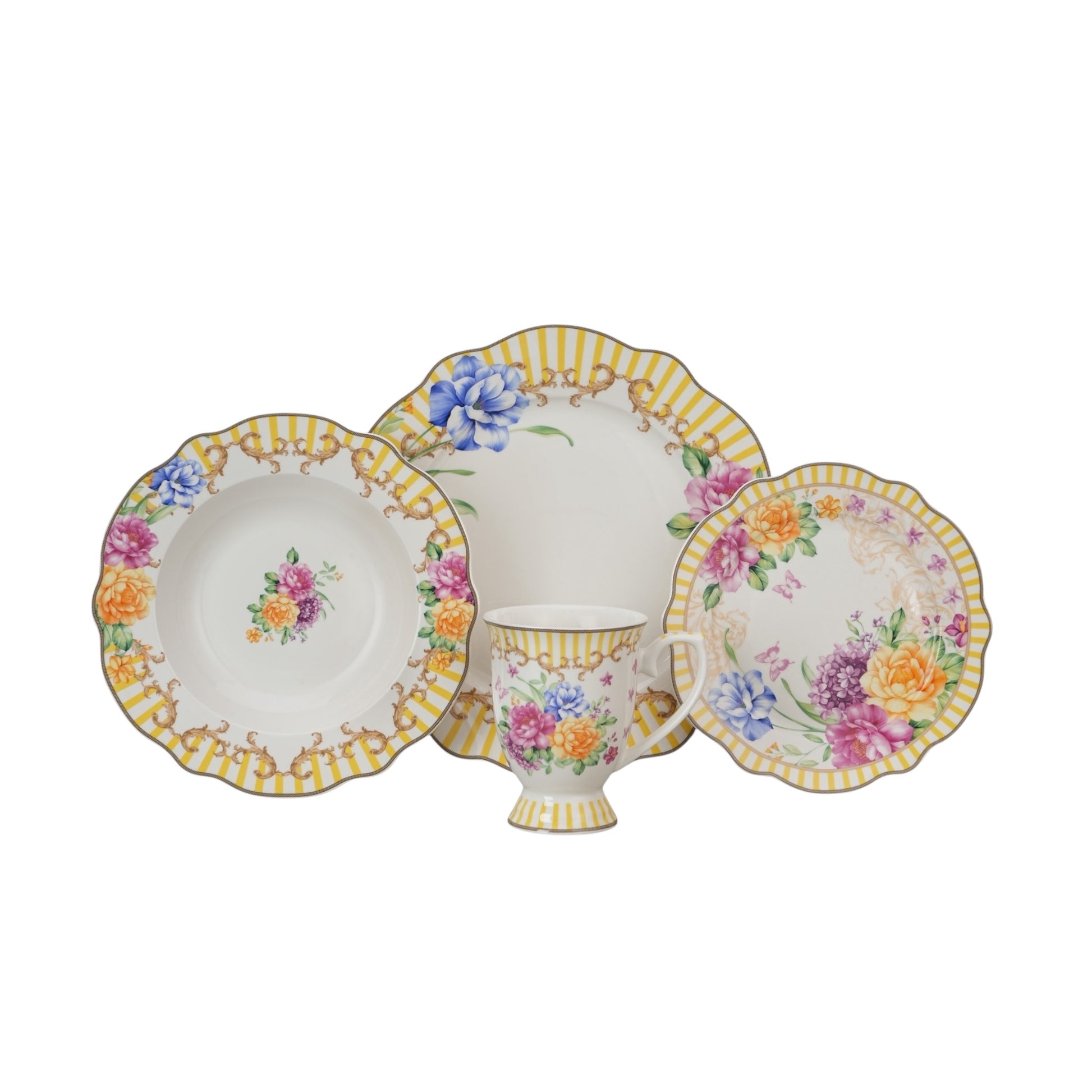 Lemon Candy Stripe 24-teiliges Set aus Knochenporzellan, Teil unserer Designer-Homewear-Kollektion