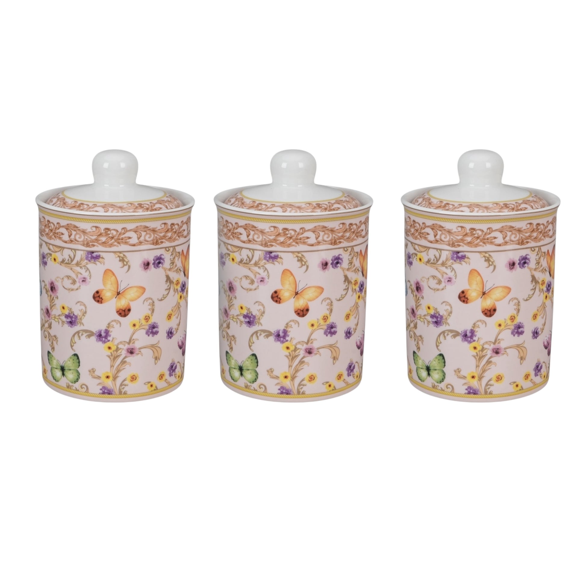 Luftdichte Aufbewahrung im 3er-Set mit rosa Schmetterlingen, ideal für Kaffee/Tee/Zucker
