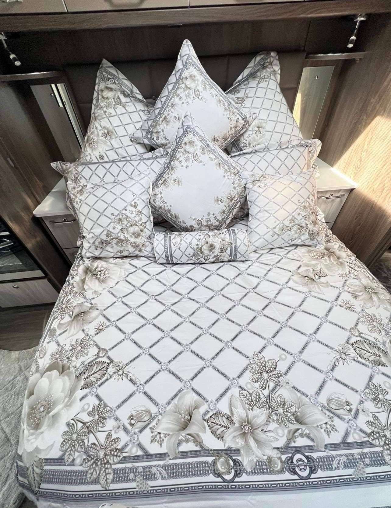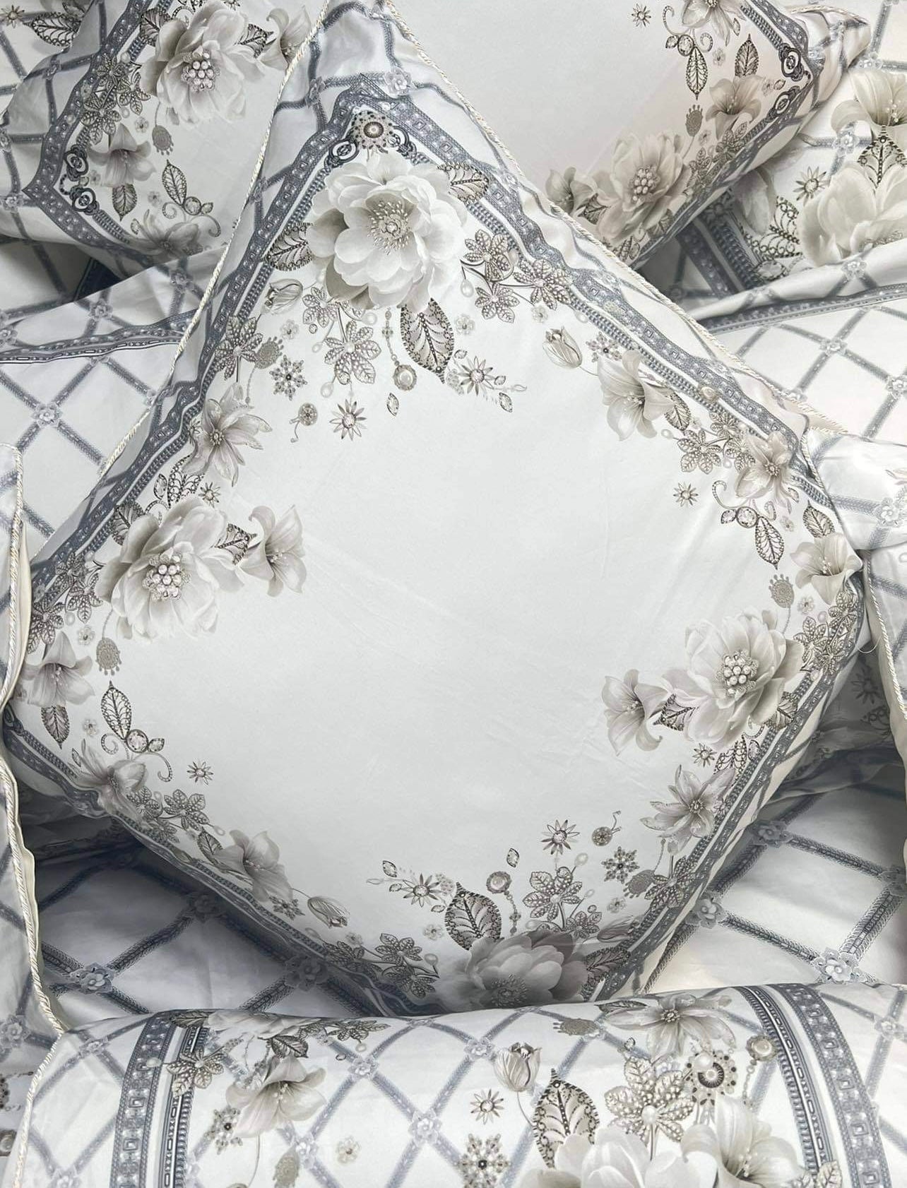 Los majestuosos en grises con lujoso estampado de joyas 100% algodón. Juegos de cama casa elegante. Vienen en juegos completos con todo lo que necesitas para crear una cama perfecta.