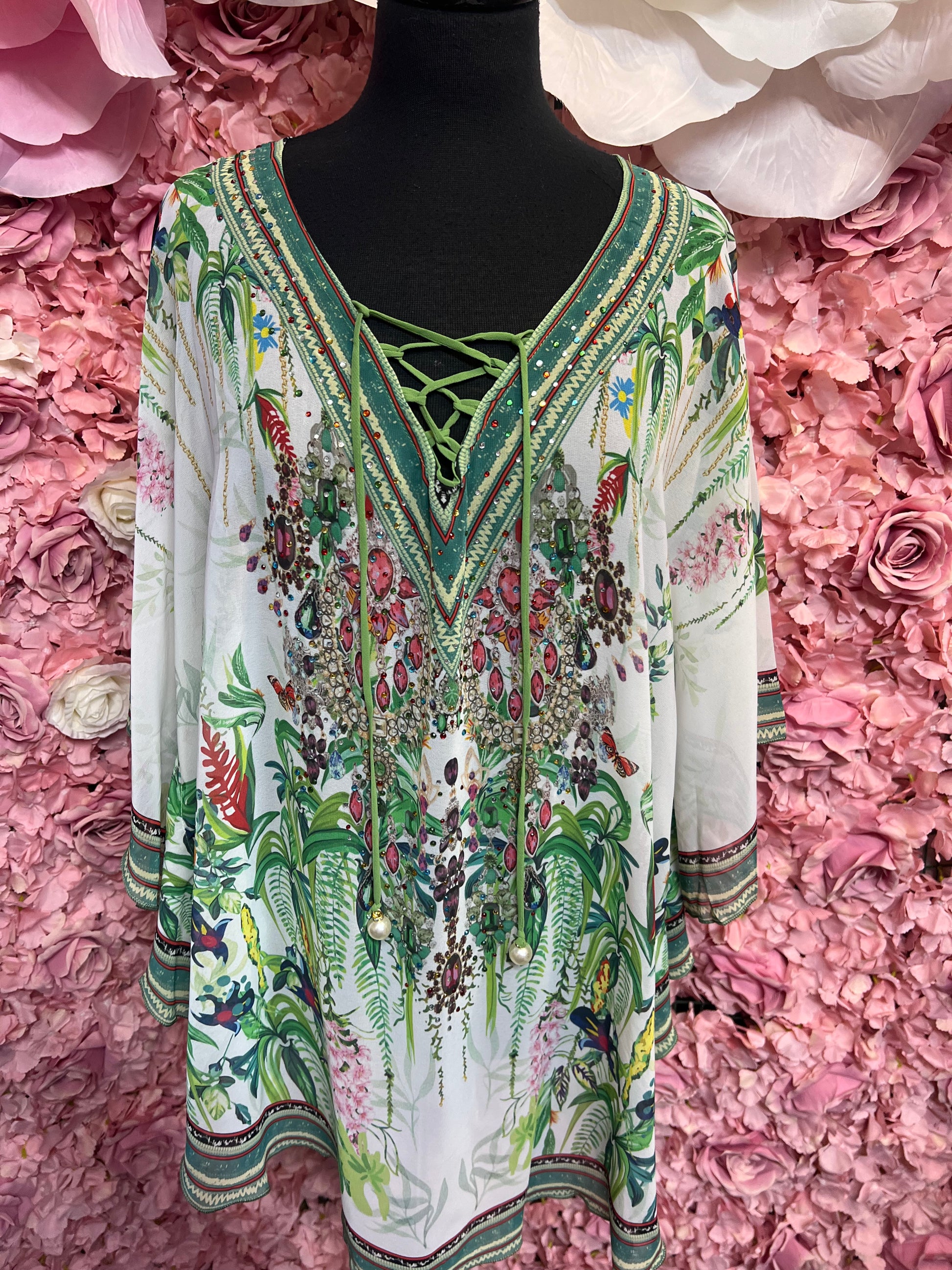 Lightweight chiffon Kaftan with Crystl details