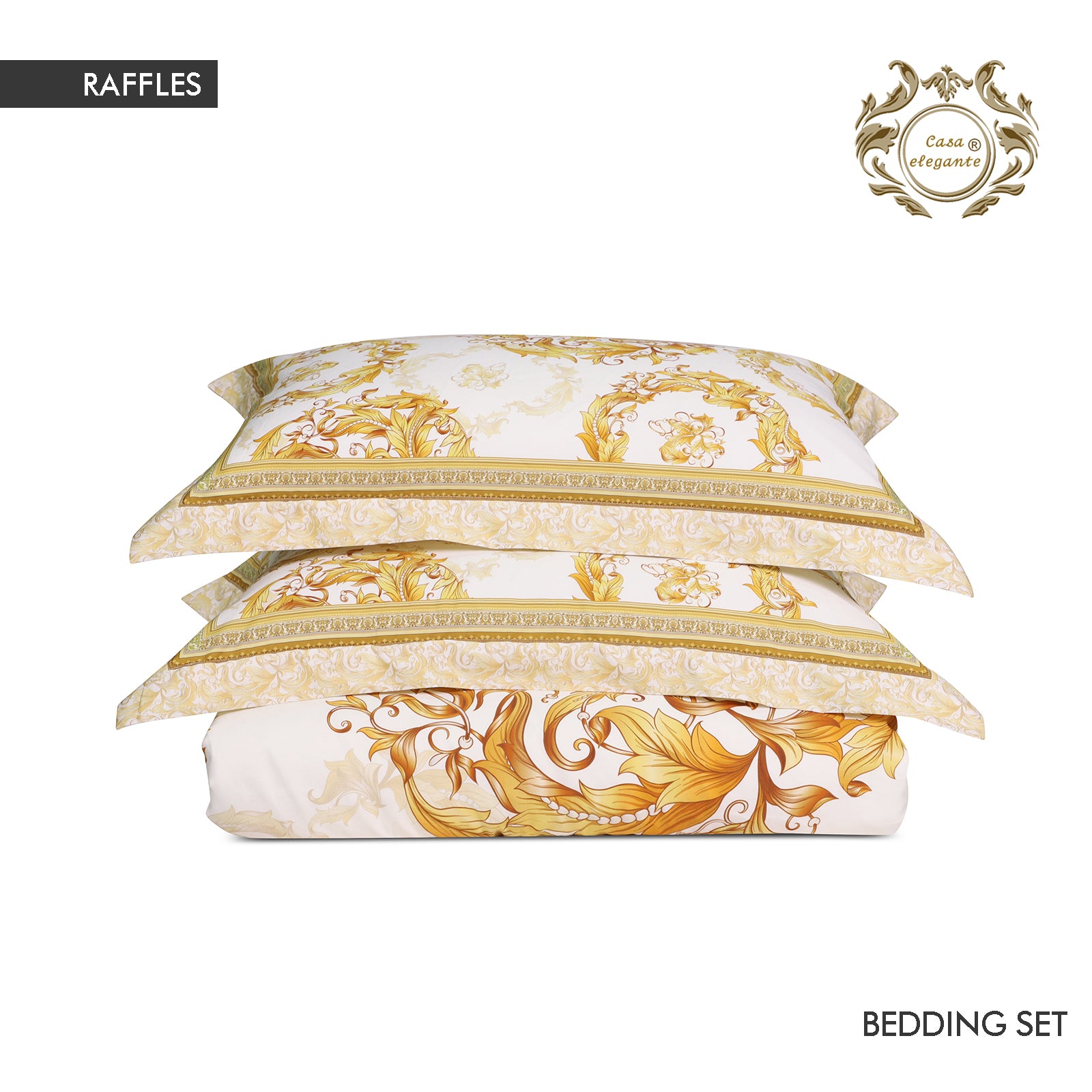 Raffles une base crème avec un luxueux imprimé baroque doré 100 % coton Parures de lit Casa Elagante Livrées en ensembles complets avec tout ce dont vous avez besoin pour créer un lit parfait